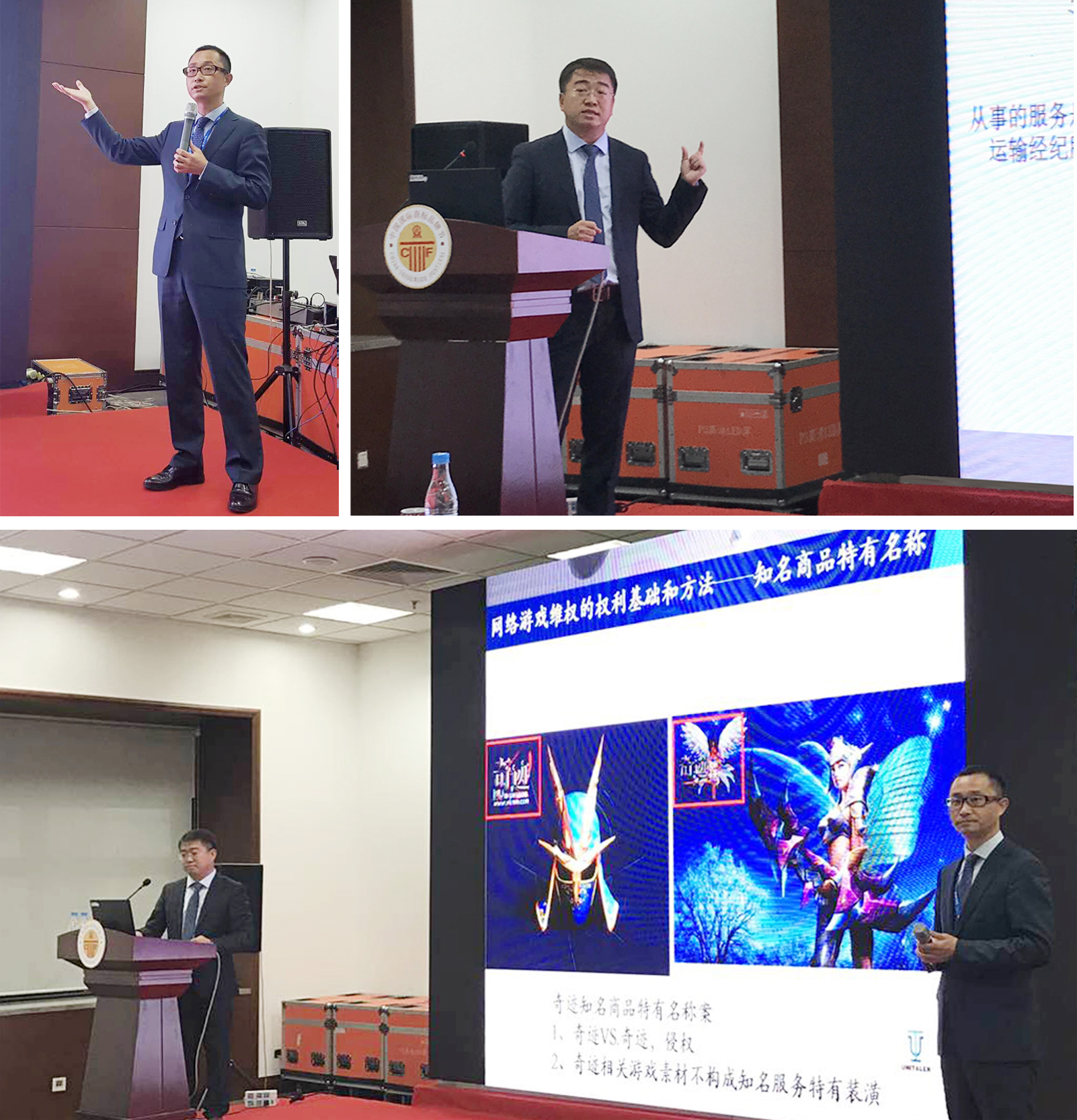 ▲趙雷、張亞洲兩位律師講解當(dāng)前APP、網(wǎng)絡(luò)游戲及影視節(jié)目名稱作為商標(biāo)注冊(cè)和保護(hù)的難點(diǎn)問題