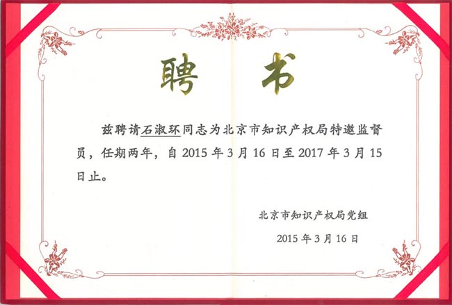 6月26日,北京市知識產(chǎn)權(quán)局召開特邀監(jiān)督員聘任儀式暨動員大會,正式實(shí)施特邀監(jiān)督員制度。六名特邀監(jiān)督員來自企業(yè)、科研院所、高等院校、知識產(chǎn)權(quán)服務(wù)機(jī)構(gòu),集佳辦公室主任石淑環(huán)作為代理機(jī)構(gòu)代表當(dāng)選,任期兩年。