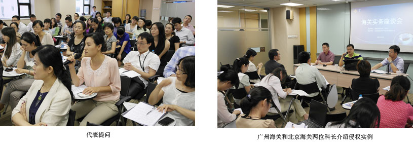 隨后,北京海關法規處知識產權科的亓明和廣州海關法規處知識產權科的黃衛東兩位科長,結合來自海關一線侵權現象的大量實例和圖片,介紹了海關在打擊知識產權侵權工作中的具體流程、時間節點、查驗標準等,并通過生動的案例,為大家介紹了近年來侵權的特點和方式,以及高風險的產品和路線等。很多企業代表和律師都表示,從沒如此直觀、詳細地了解過海關在查驗查扣侵權產品時的工作,增加了對海關工作的理解。