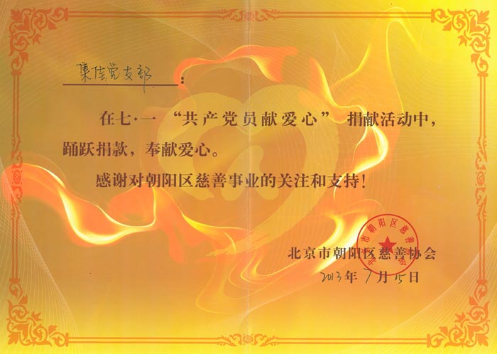 在慶祝中國共產(chǎn)黨成立92周年之際,響應(yīng)朝陽區(qū)委政法委《關(guān)于做好中國共產(chǎn)黨成立92周年系列活動(dòng)的通知》號召,集佳律師事務(wù)所開展了“共產(chǎn)黨員獻(xiàn)愛心”捐款活動(dòng)。