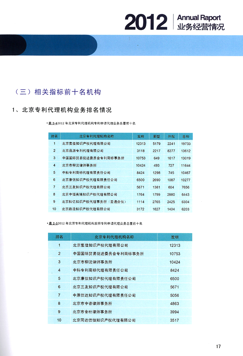 2012北京專利代理年報發(fā)布 集佳專利申請總量及發(fā)明申請量均列第一