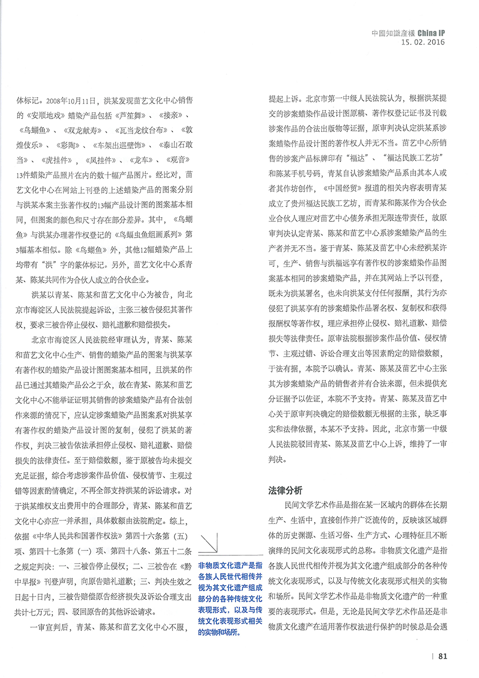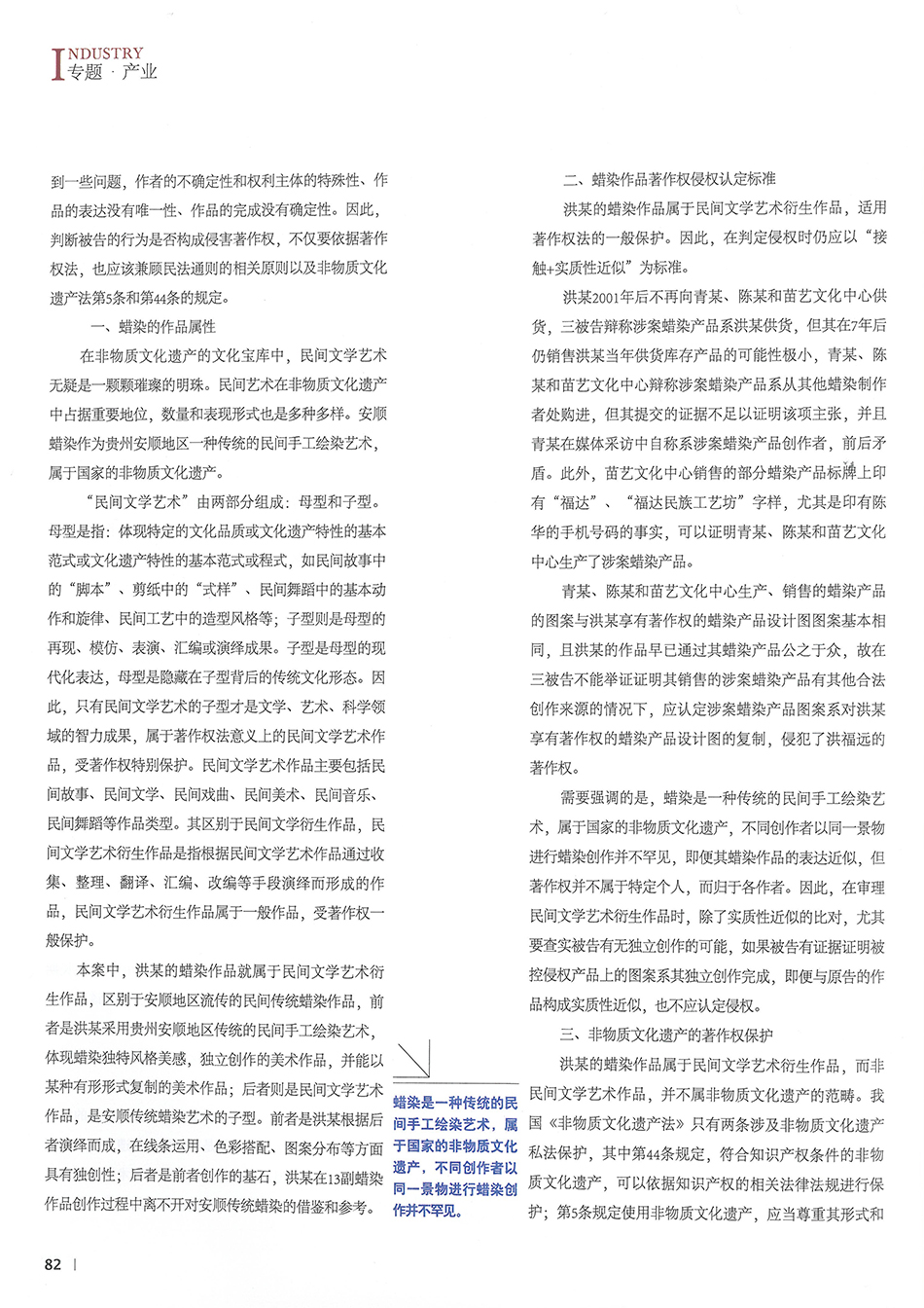 集佳律師李科峰文章《案解民間文學藝術作品的知識產權法律保護——以安順蠟染的個案保護為例》在《中國知識產權》發表