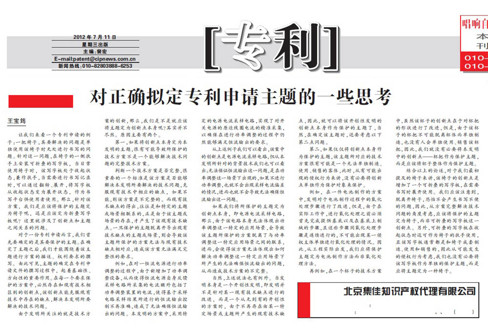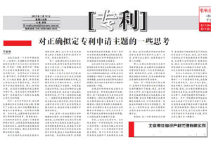 《中國知識產權報》:對正確擬定專利申請主題的一些思考