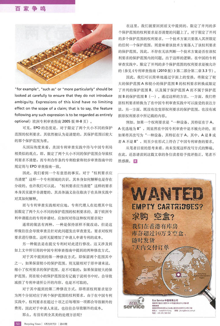 《再生時代》:關(guān)于權(quán)利要求中“限定了兩個大小不同的保護(hù)范圍”問題的探討