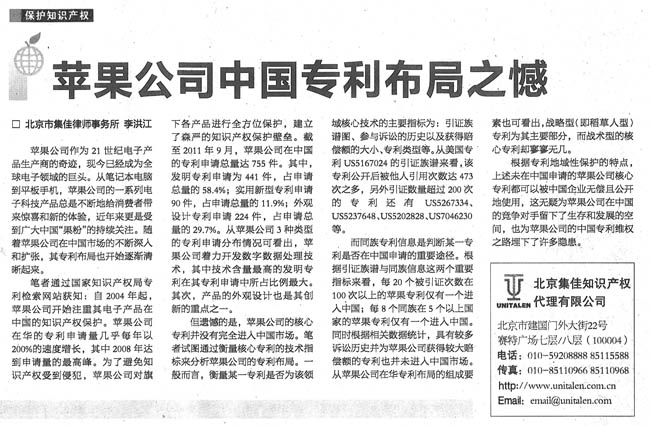 《國際商報》:蘋果公司中國專利布局之憾