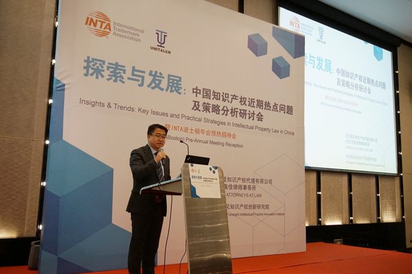 隨后,李永波先生作為主辦方INTA代表發(fā)言。他首先感謝集佳多年來(lái)對(duì)INTA相關(guān)工作的大力支持,同時(shí)他還表示,INTA 在近幾年與中國(guó)的聯(lián)系越來(lái)越密切,這都離不開(kāi)所有業(yè)內(nèi)人士和專家們的關(guān)注與支持,在此向所有同行以及業(yè)界人士表達(dá)誠(chéng)摯的謝意。李永波先生介紹,2019年INTA第141屆年會(huì)活動(dòng)將于5月18~22日在美國(guó)波士頓舉行,希望通過(guò)本次預(yù)熱活動(dòng),使國(guó)內(nèi)的代理機(jī)構(gòu)對(duì)國(guó)際商標(biāo)協(xié)會(huì)有更深入的了解,同時(shí)希望廣大企業(yè)和業(yè)界同仁積極關(guān)注并參與INTA年會(huì)活動(dòng)。