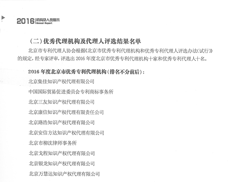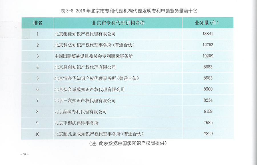 自《北京市專利代理年報》發(fā)布以來,集佳每年都在不同業(yè)務(wù)領(lǐng)域和不同指標(biāo)排名中保持優(yōu)勢,尤其在發(fā)明專利申請量、有效專利申請量、專利申請業(yè)務(wù)總量等公認(rèn)值得參考的評價項目上。而這些指標(biāo)通常是代理機構(gòu)專業(yè)水平、代理質(zhì)量、市場開拓、服務(wù)質(zhì)量等綜合能力的反映。