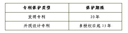 美國專利保護類型及保護期限如表1-2-1所示。