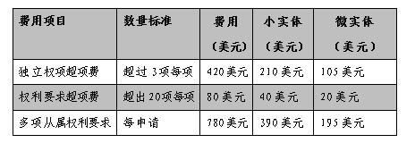 美國專利申請超頁超項費用如表1-2-5所示。