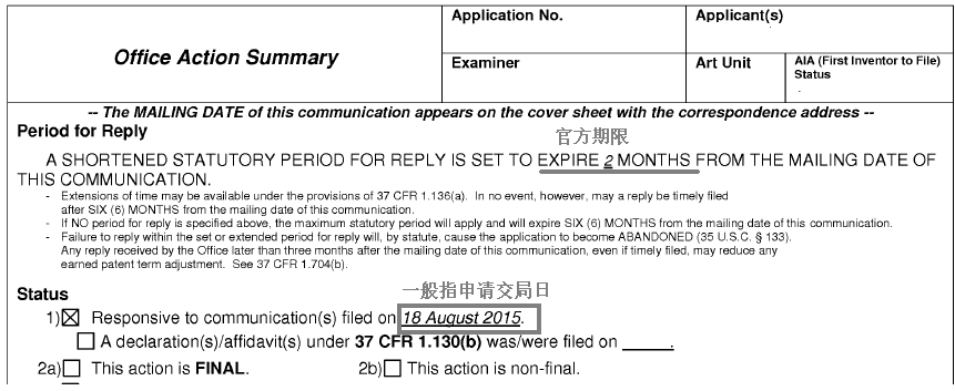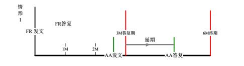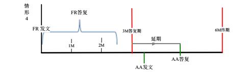 (1)情形1、申請人于FR發文日起的2個月內完成答復,審查員在3個月答復期內發出AA,若AA答復日晚于3M法定期限,則延期自3M法定期限起算。