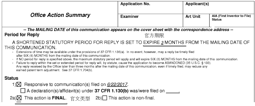 審查員在NR之后發出的最終審查意見通知書,FR的官方答復期限為FR發文日起的三個月內。