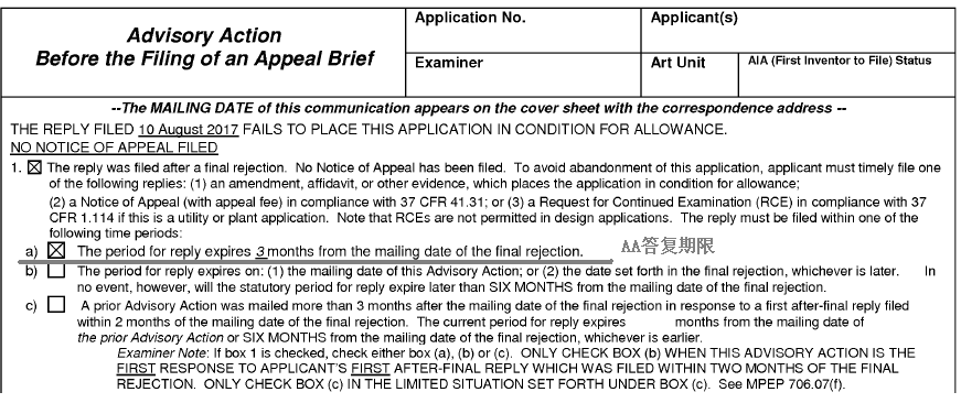 1.3.2.4 Advisory Action傾向性意見(簡稱AA)