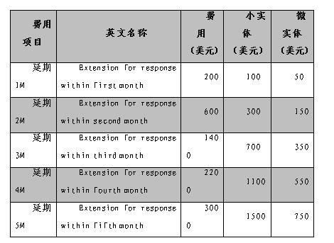 錯過了OA官文的常規答復期限,繳納延期費可進行補救。美國官文答復延期費的標準如表1-2-6所示。