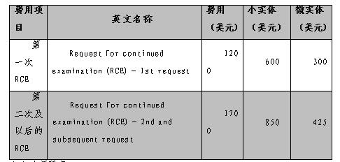 收到USPTO下發的Final-OA時,若申請人希望與該審查員進行繼續爭辯或提交相應修改,可啟動RCE程序。啟動RCE程序,須繳納相應費用(具體如表1-2-7所示)。RCE程序可以啟動多次,通常情況下,每次RCE程序中,申請人可以獲得兩次與審查員爭辯或提交修改的機會。