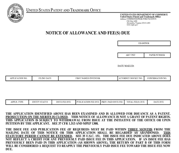 在final OA后或支付授權費當天或之前,若出現需要遞交IDS的情況出現,應及時提交。此階段需繳納USD 180官費(大實體標準)和一份聲明,USPTO才會考慮IDS。