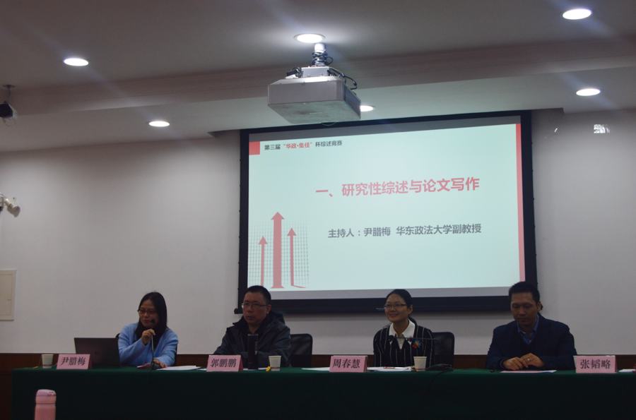交流環節分為兩部分,第一部分主題為“研究性綜述與論文寫作”,由尹臘梅副教授擔任主持。同濟大學張韜略副教授、《電子知識產權》周春慧編輯與南京理工大學郭鵬鵬副教授紛紛結合自己學術研究與工作經歷,闡明了綜述性文章寫作的重要性,并分享自己的撰寫經驗與心得。第二部分主題為“綜述寫作經驗分享”,由華東政法大學研究生李旭穎擔任主持。中南財經政法大學李安同學、上海交通大學張斯瑋同學、華東政法大學姚藝同學、華東政法大學李若源同學結合自己的獲獎綜述作品,對撰寫過程中的心得經驗進行了分享。