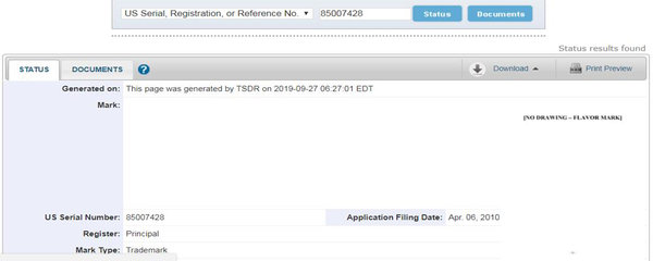 美國的氣味/味道商標(biāo)申請注冊較少,從我們能找到的商標(biāo)注冊來看,其在申請過程中主要以文字的方式來對擬申請的氣味/味道進(jìn)行描述。如:The mark consists of the distinctive flavor of peppermint in connection with nitroglycerin. 該商標(biāo)包括薄荷和硝酸甘油的獨(dú)特風(fēng)味。