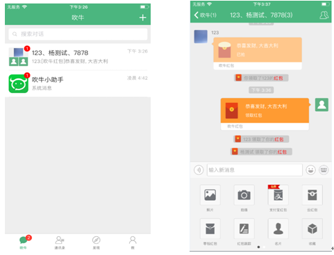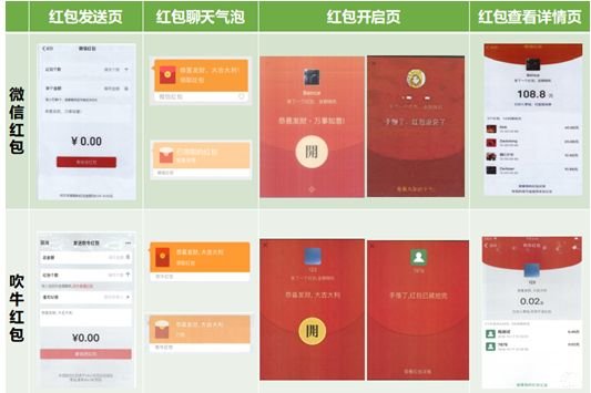 騰訊公司主張“吹牛”軟件中提供紅包收發(fā)服務,在紅包發(fā)送接收全過程中所使用的紅包發(fā)送頁、聊天氣泡、開啟頁、查看詳情頁等界面全面抄襲、模仿騰訊公司“微信紅包”相關(guān)界面。此外“吹牛”軟件中還使用與“微信”軟件底部界面“聊天、通訊錄、發(fā)現(xiàn)、我”圖標高度近似的圖標等。上述行為涉嫌侵犯騰訊公司相關(guān)作品著作權(quán),并構(gòu)成不正當競爭。