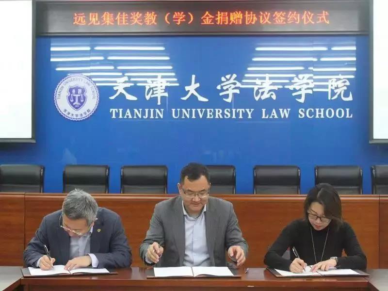 2018年12月29日,“天津大學(xué)法學(xué)院遠見集佳獎教(學(xué))金”捐贈協(xié)議簽訂儀式在津舉行。中關(guān)村遠見知識產(chǎn)權(quán)創(chuàng)新研究院理事長高巍,北京市集佳律師事務(wù)所主任李永波律師,天津大學(xué)校友與基金事務(wù)處處長潘峰、任杰老師和天津大學(xué)法學(xué)院院長孫佑海,副書記、副院長李明,郭貴雨老師等出席。