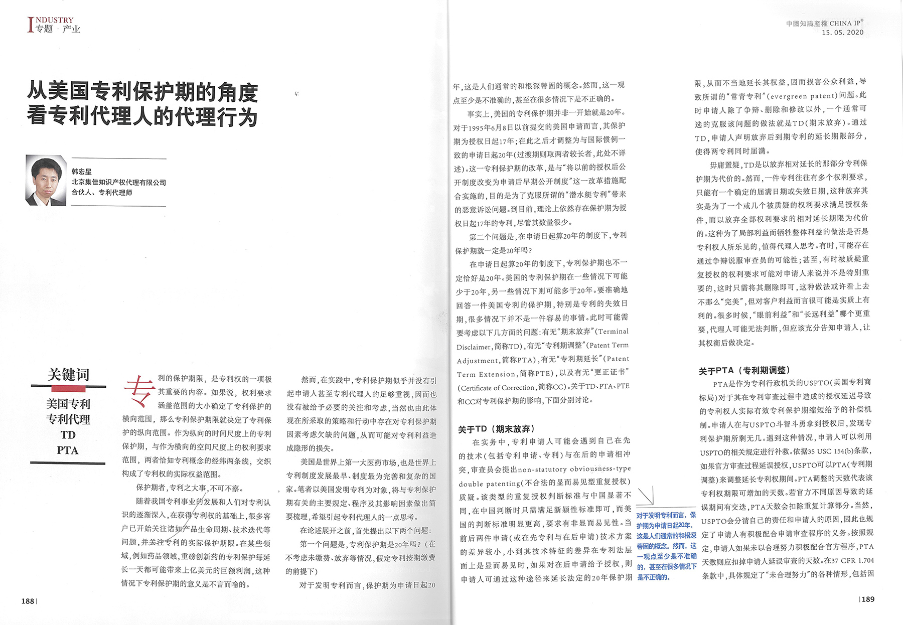 集佳文章《從美國專利保護期的角度看專利代理人的代理行為》在《中國知識產權》發表