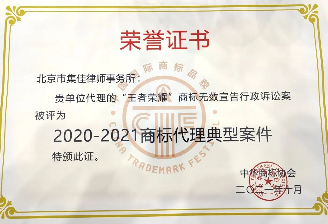 6月17日,第十三屆中國國際商標(biāo)品牌節(jié)正式拉開帷幕,各項活動火熱進(jìn)行。在“商標(biāo)典型案例評析論壇”上,集佳律師事務(wù)所代理的“第33類‘王者榮耀’無效宣告行政訴訟案”和“OPPO侵權(quán)案”因其體現(xiàn)出的創(chuàng)新性、實效性、典型性和影響力,在眾多案例中脫穎而出,雙雙入選“2020-2021商標(biāo)代理典型案件”。