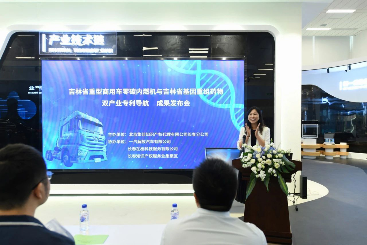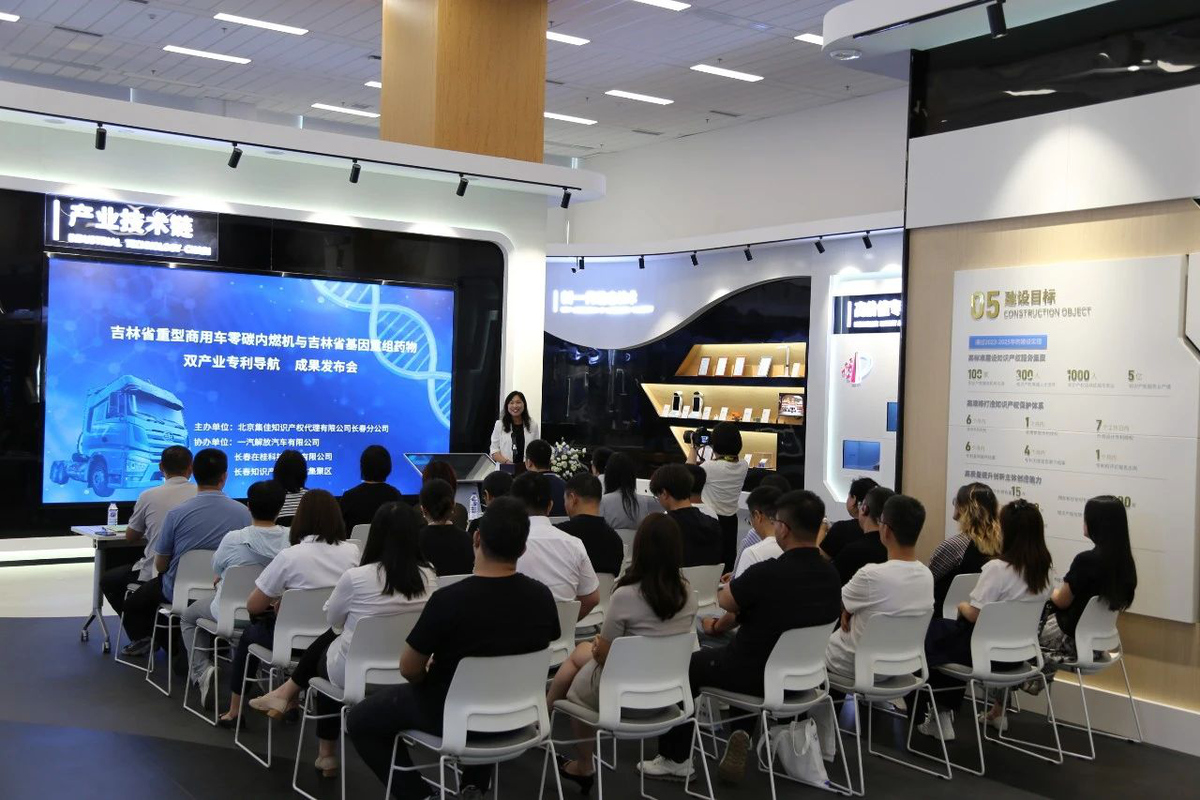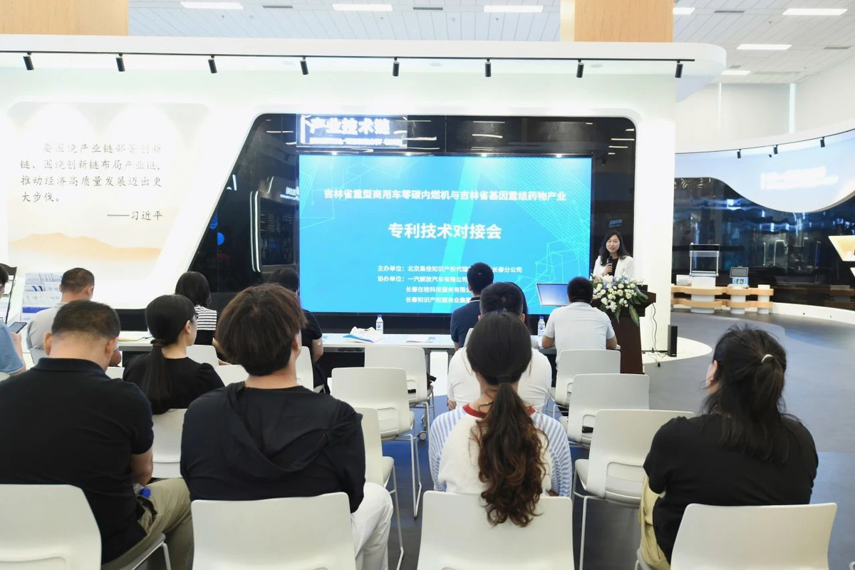 2025年7月16日,由北京集佳知識產權代理有限公司長春分公司主辦,一汽解放汽車有限公司、長春在桂科技服務有限公司及長春知識產權服務業(yè)集聚區(qū)共同協辦的“吉林省重型商用車零碳內燃機與基因重組藥物雙產業(yè)創(chuàng)新成果發(fā)布及專利技術對接會”在長春知識產權服務業(yè)集聚區(qū)圓滿舉行。