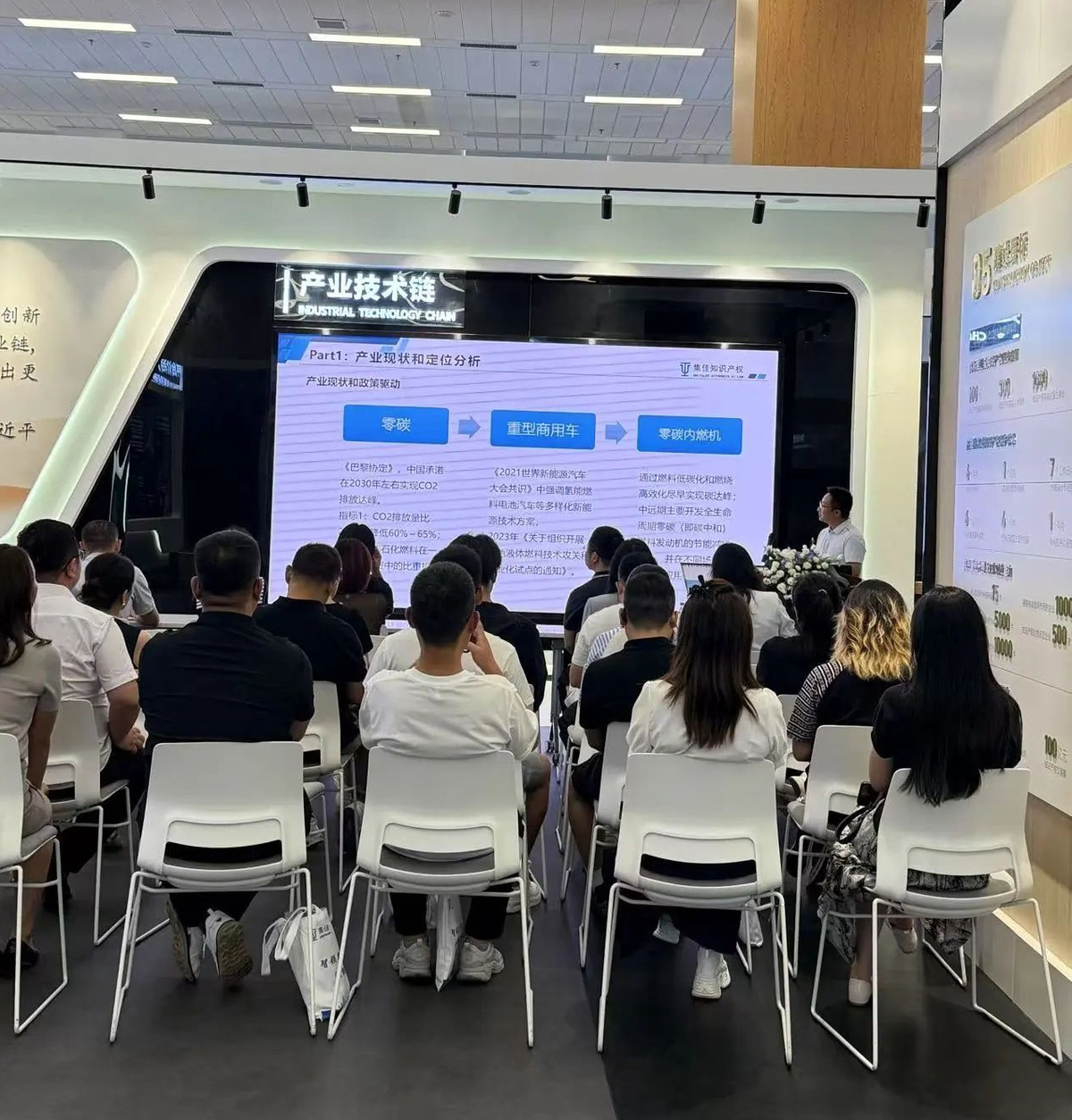 集佳項目負責人魏丹介紹吉林省重型商用車零碳內燃機產業(yè)專利導航成果(上圖,右圖) |