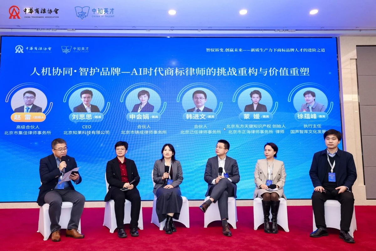 在年會論壇環節,趙雷律師應邀主持“人機協同·智護品牌”為主題的圓桌論壇,與多位業界專家圍繞“AI時代商標律師的挑戰重構與價值重塑”話題,從行業現狀和自身經驗出發,就AI在商標檢索、侵權判定、訴訟代理等商標業務中的應用新趨勢,以及法律工作者如何借助AI拓展服務范圍、提升服務品質等問題展開了熱烈討論,深入解析AI對商標法律工作模式與價值產生的深刻影響。