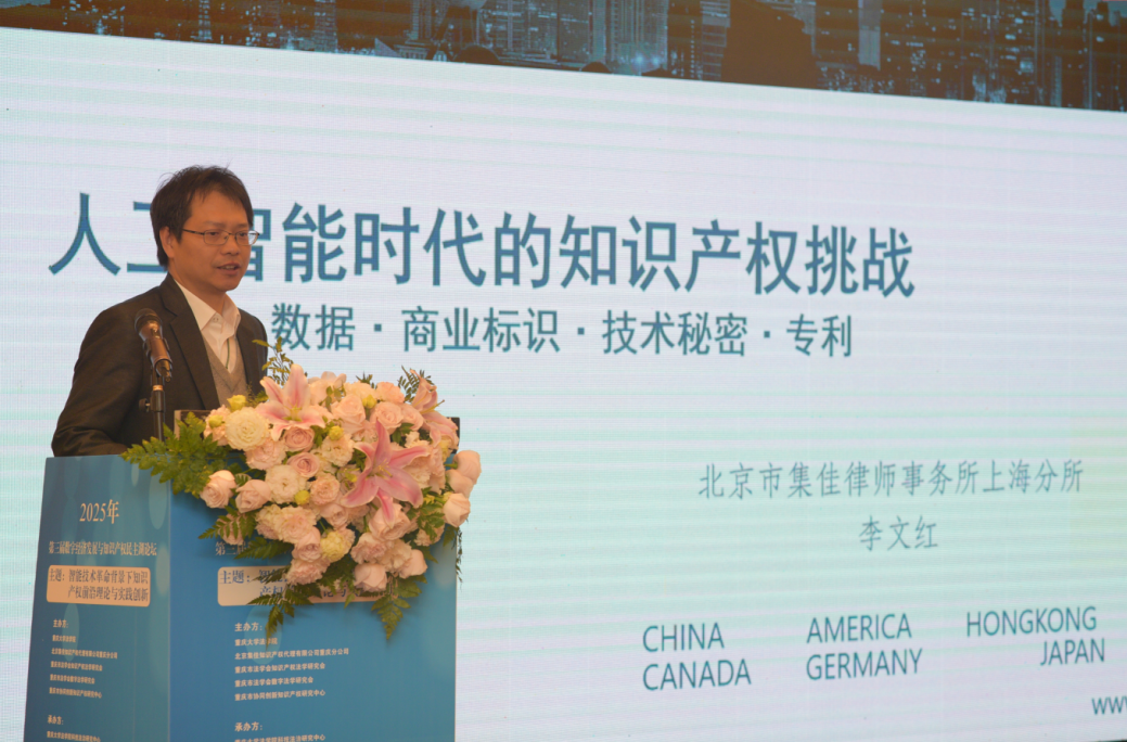 集佳上海分所主任李文紅博士則以“人工智能時(shí)代的知識(shí)產(chǎn)權(quán)挑戰(zhàn)”為題,結(jié)合多個(gè)典型案例,系統(tǒng)剖析了版權(quán)、數(shù)據(jù)、商業(yè)標(biāo)識(shí)、專利四大領(lǐng)域面臨的全新課題。他指出,AI訓(xùn)練數(shù)據(jù)的合法使用邊界、生成內(nèi)容的著作權(quán)歸屬、數(shù)據(jù)權(quán)益的司法保護(hù)等問題已成為行業(yè)焦點(diǎn),其分享的高德訴萬得不正當(dāng)競(jìng)爭(zhēng)案、抖音訴億睿科模型參數(shù)侵權(quán)案等實(shí)務(wù)案例,為現(xiàn)場(chǎng)嘉賓提供了極具價(jià)值的實(shí)踐參考,引發(fā)廣泛共鳴。